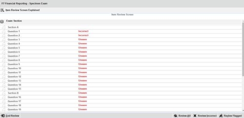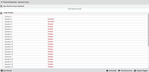 学员在考试倒计时一道题目的界面上点击“Next”,会显示“Review”界面。可以让学员看到每一道题目的答题状态,他们也可以挑选一些试题重新回答。考试各部分的总结界面将会对考试下一部分的内容进行总结。