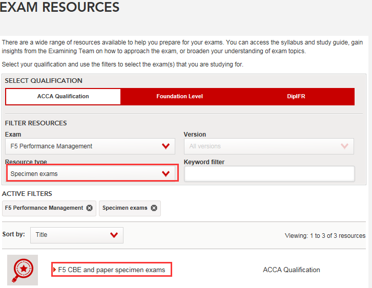 首先,进入acca官网,找到students下面的exam surport resources,选择需要练习的的科目(F5),resource type选specimen exam(样卷),在筛选出的条件中点击第一个CBE and paper specimen exam,进入页面以后点击F5 speciman exam即可看到机考页面。