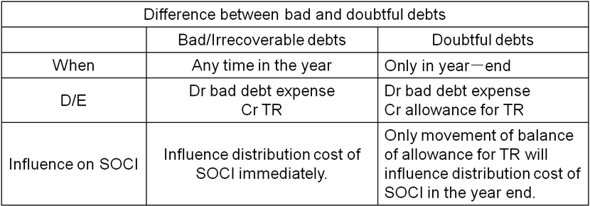 Bad/Irrecoverable debts坏账