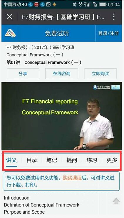 点击微信公众号底端的 我要学习--课程试听,体验手机版网校,手机版正保会计网校支持全部页面端功能,无需下载软件,即可随时随地学习(如需节省流量也可下载正保会计网校移动课堂APP,将课程下载至手机或PAD)。