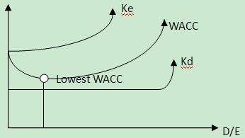 Companies seek the minimum level of WACC, assume the WACC as discount rate, the value of the company (CFs/ WACC) is maximized.