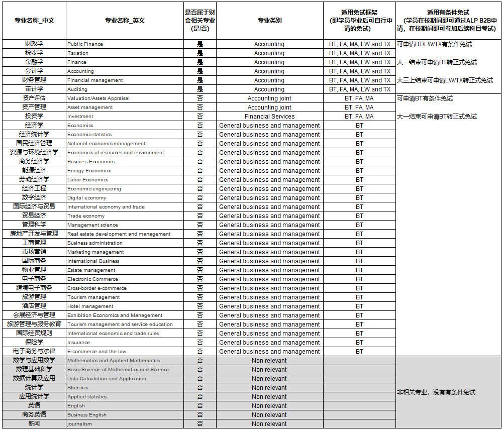 根据ACCA官网公布的免试政策,商科专业有不少学生可以申请免试。不止是会计学专业,例如财务管理、金融等会计类专业,在备考ACCA上比其他专业的高校生有不少优势。