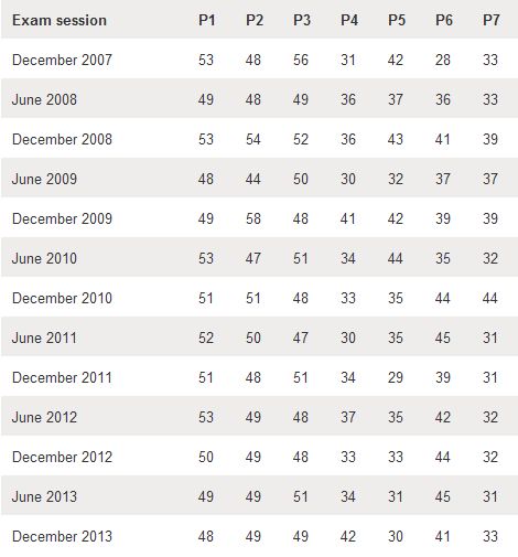 以下内容是ACCA官方在2月7日提供的ACCA历年考试通过率的统计信息。2013年12月份的考试已于2月8日由ACCA官方下发至各位考生的邮箱(各位考生也可登录myACCA进行查询)。正保会计网校恭喜成功通过考试的考生,未通过的学员也无需气馁,大家再接再励!希望接下来的信息能够为考生们为今年考试报考提供参考意见。