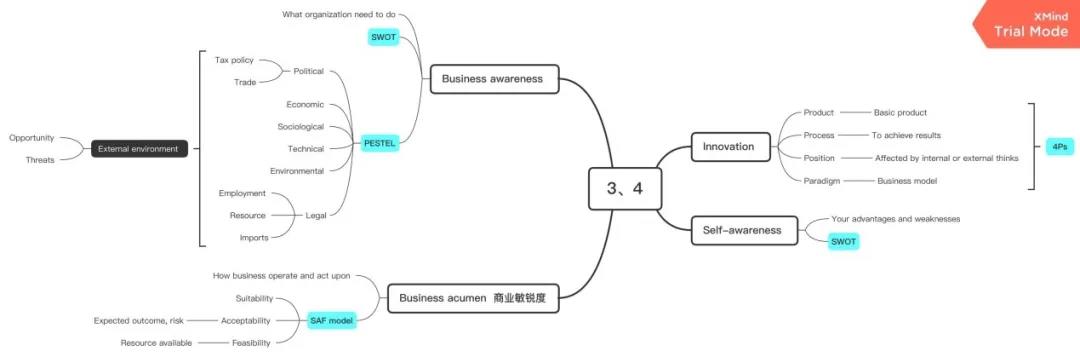 我的学习技巧就是边学习边运用X-Mind写下每一章的思维导图。思维导图不需要很详细,但写下的关键词必须具有代表性;也可以运用自己的语言,方便快速查看。