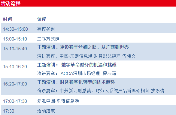 参与对象: ACCA会员、准会员、广西TOP50企业财务负责人、高层管理者、CIO