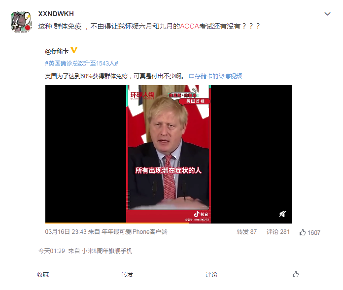 意大利、伊朗、西班牙、德国、法国、美国等国家纷纷陷落,而作为国际注册会计师组织的本土国家——英国也不能幸免于难。截止至17日上午10点,英国已累计确诊1543个新冠病毒肺炎病例。