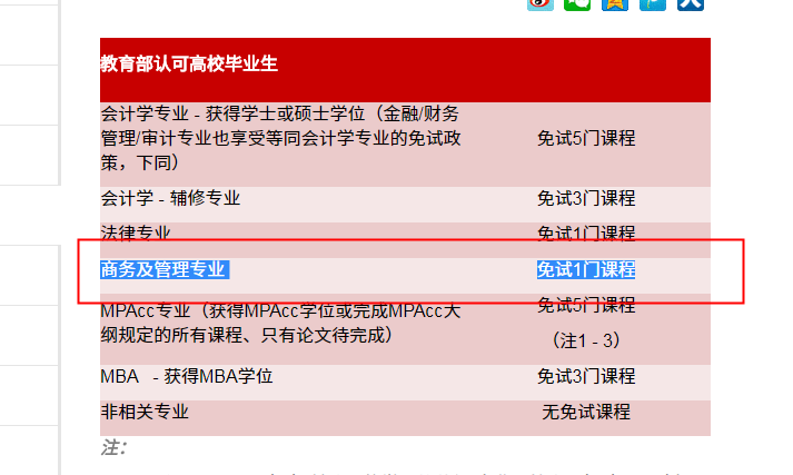 MPAcc专业(获得MPAcc学位或完成MPAcc大纲规定的所有课程、只有论文待完成) | 免试5门课程 (注1 - 3) |