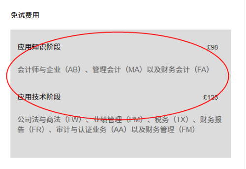应用技术阶段 £123 主要科目有:公司法与商法(LW)、业绩管理(PM)、税务(TX)、财务报告(FR)、审计与认证业务(AA)以及财务管理(FM)