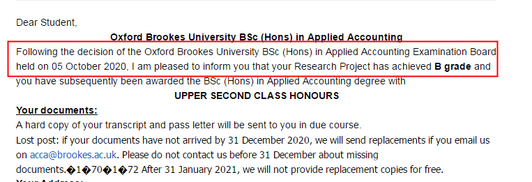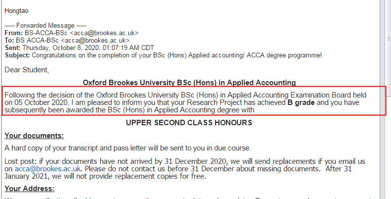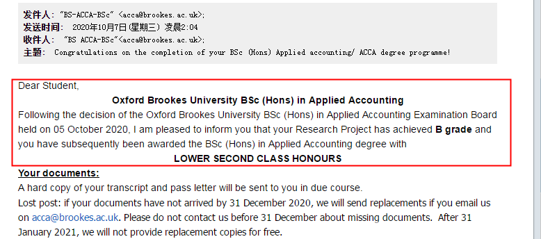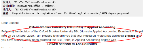 喜报!!喜报!!2020年牛津布鲁克斯大学(OBU)论文成绩出炉,正保会计网校ACCA学员纷纷报喜啦!!学员的喜悦与网校的荣耀,我们一起来见证吧~