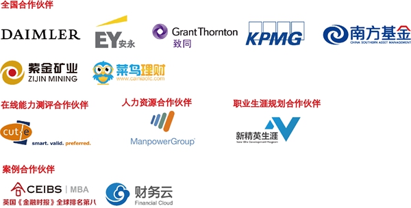 2018年大赛获得全国合作伙伴戴姆勒大中华区、安永华明会计师事务所(特殊普通合伙)、致同会计师事务所(特殊普通合伙)、毕马威华振会计师事务所(特殊普通合伙)、南方基金管理股份有限公司、紫金矿业集团股份有限公司、深圳市财鸟汇网络科技有限公司等知名企业的大力支持。此外,在线职业能力测评由cut-e提供,万宝盛华为大赛人力资源合作伙伴,新精英生涯为大赛选手们提供职场技能培训的支持,中欧国际工商学院和中兴新财务云为案例合作伙伴。