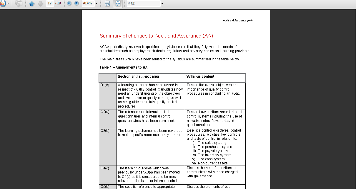 那么,新大纲都发生了哪些变化呢?我们应该如何去看呢?其实很简单,点击下载你所需要的考试大纲,并翻开倒计时一页,即有ACCA官方已经为我们列好的几项变化。例如:(AA)