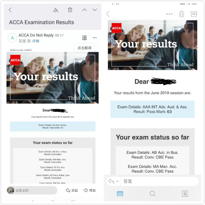 2019年7月15日,ACCA官网公布出了2019年6月考试季的ACCA考试成绩。成绩刚刚公布,编者就收获了一批学员的热情反馈,在此,向发来成绩单的童靴们说声:恭喜!恭喜大家通过本次考试。