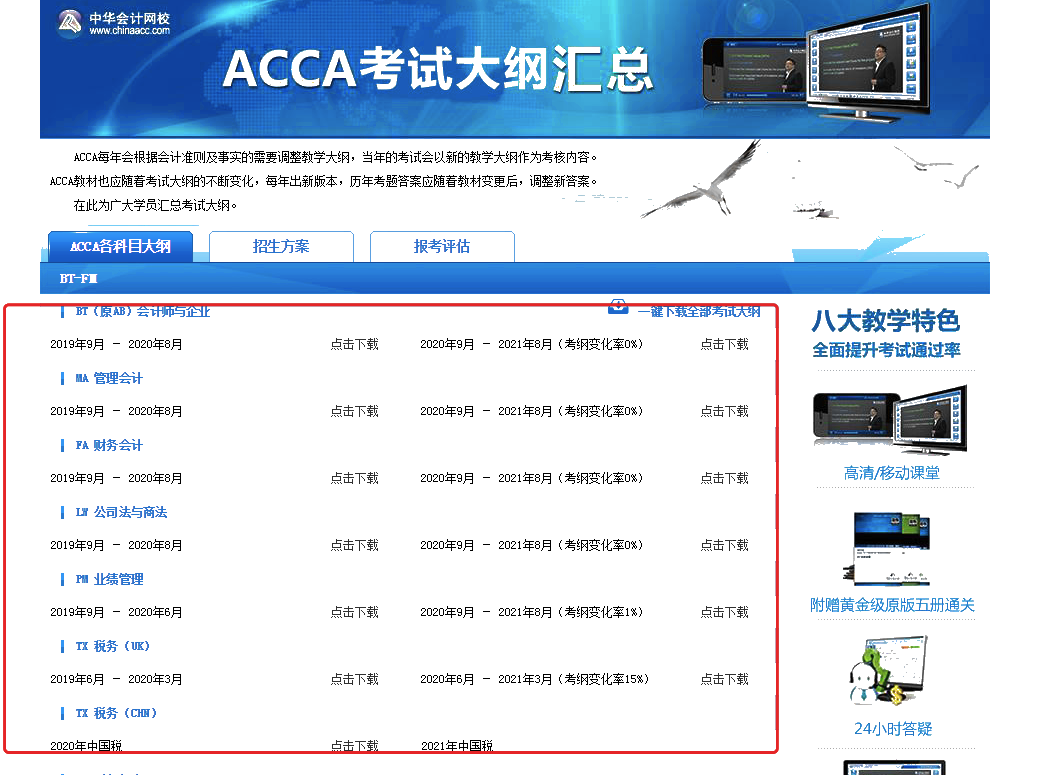 正保会计网校为广大学员汇总了全套ACCA考纲信息,并即将开放下载,大家可点击//www.fawtography.com/acca/zhuanti/syllandsg.htm(更新中)进行下载。