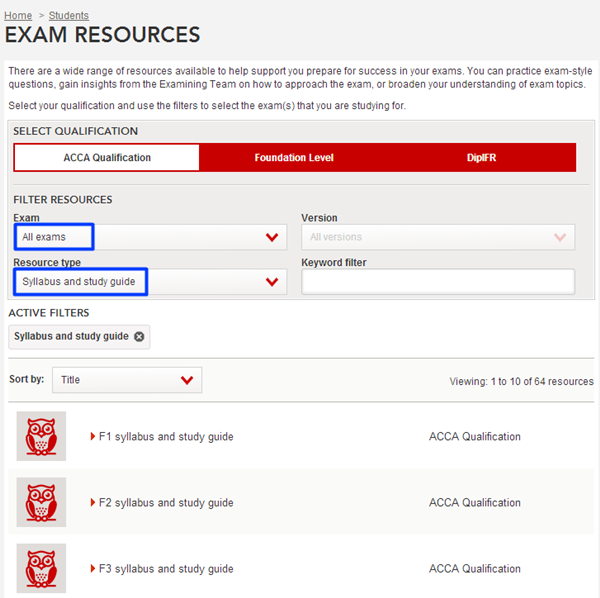 ◆2.选择下图蓝框中选项即可看到ACCA各科目考试大纲。