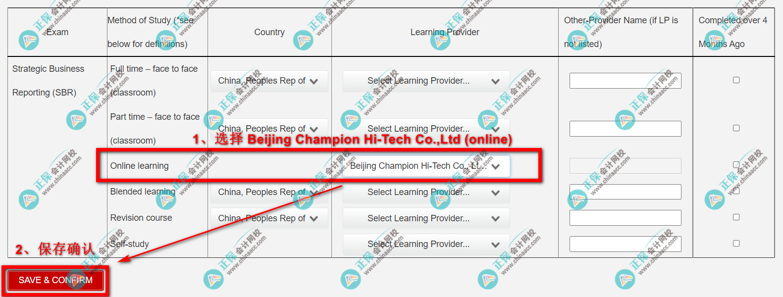 3、网校ACCA学员进入到下面这个位置时,按照红框中的内容选择: