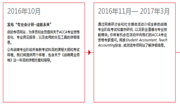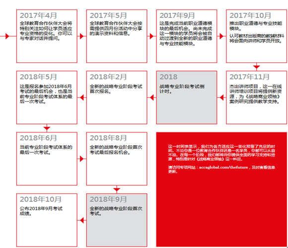 以上变革将于2018年9月考试起正式实施,在此之前,ACCA将按进度向学生及教育机构提供变革的资源,具体日程如下:
