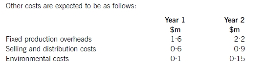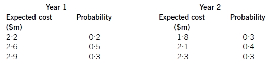 Expected marketing cost year 2:(0·3 x $1·8m)+ (0·4 x $2·1m)+ (0·3 x $2·3m)= $2·07m