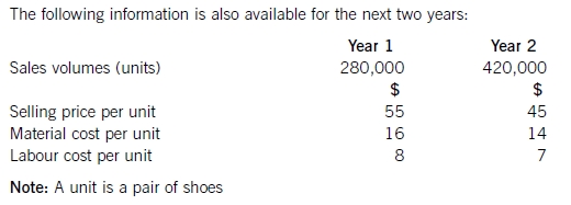 Applying the principles of life cycle costing,calculate the total expected profit for Shoe Co for the two-year period.