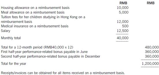 (b)Ms Wu is an expatriate working and living in Guangzhou. Her remuneration package for 2015 is as follows: