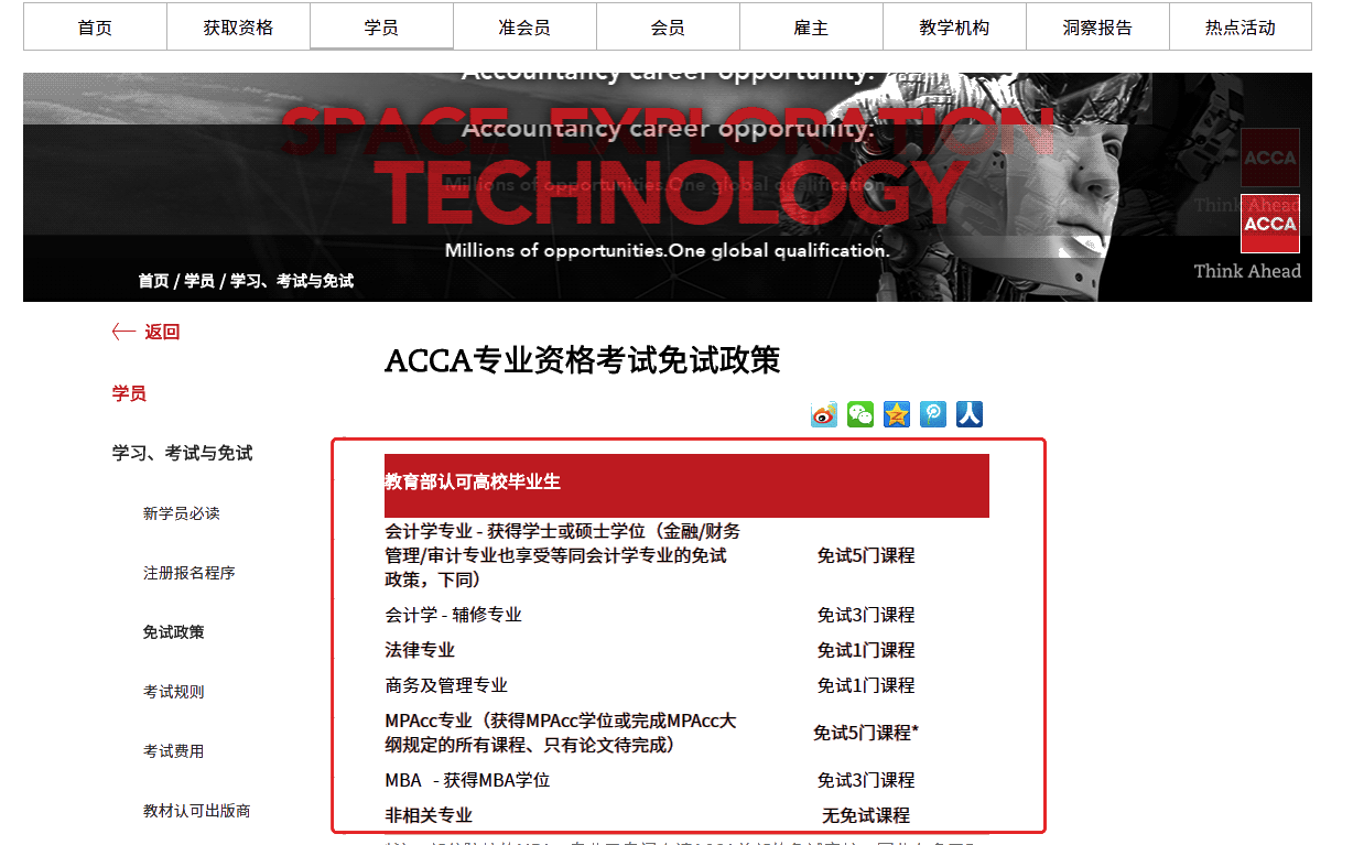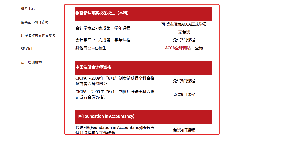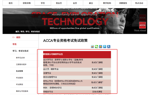 *以上专业所对应的免试门数仅供参考,至终免试结果由ACCA英国总部审核确认。如您对免试政策有任何疑问,欢迎致电ACCA代表处或登录ACCA网站查询有关资料