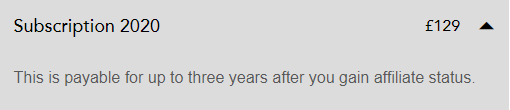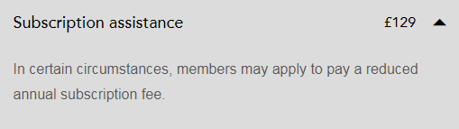 准会员标准:年费由123英镑提高到129英镑;