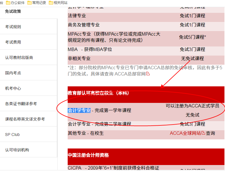 众所周知,报考ACCA很多人都可以申请1-9门不等的科目免考,那么,就读会计学专业的大一新生可以免考ACCA吗?图片来自:ACCA中国官网