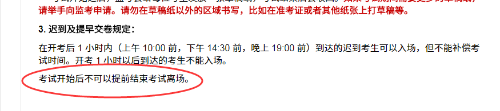 通过图片我们不难看到,在ACCA开考后 1 小时内(上午 10:00 前,下午 14:30 前,晚上 19:00 前)到达的迟到考生可以入场,但不能补偿考试时间;开考 1 小时以后到达的考生不能入场;考试开始后不可以提前结束考试离场。