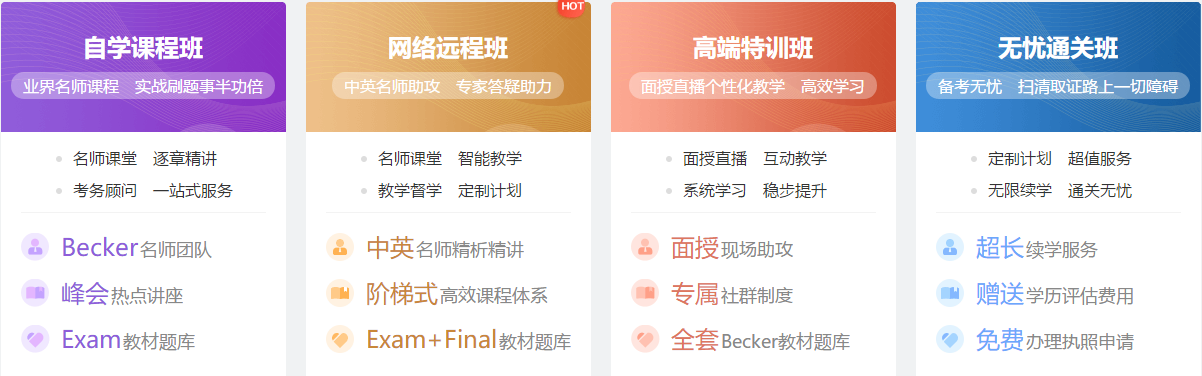 正保会计网校为不同USCPA学员设置了四种课程,每种USCPA课程都各有特点,各有优势!