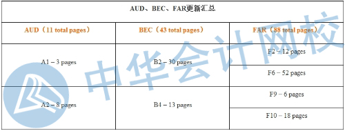 以下是AUD、BEC、FAR更新知识点内容的页数汇总,供准考生参考: