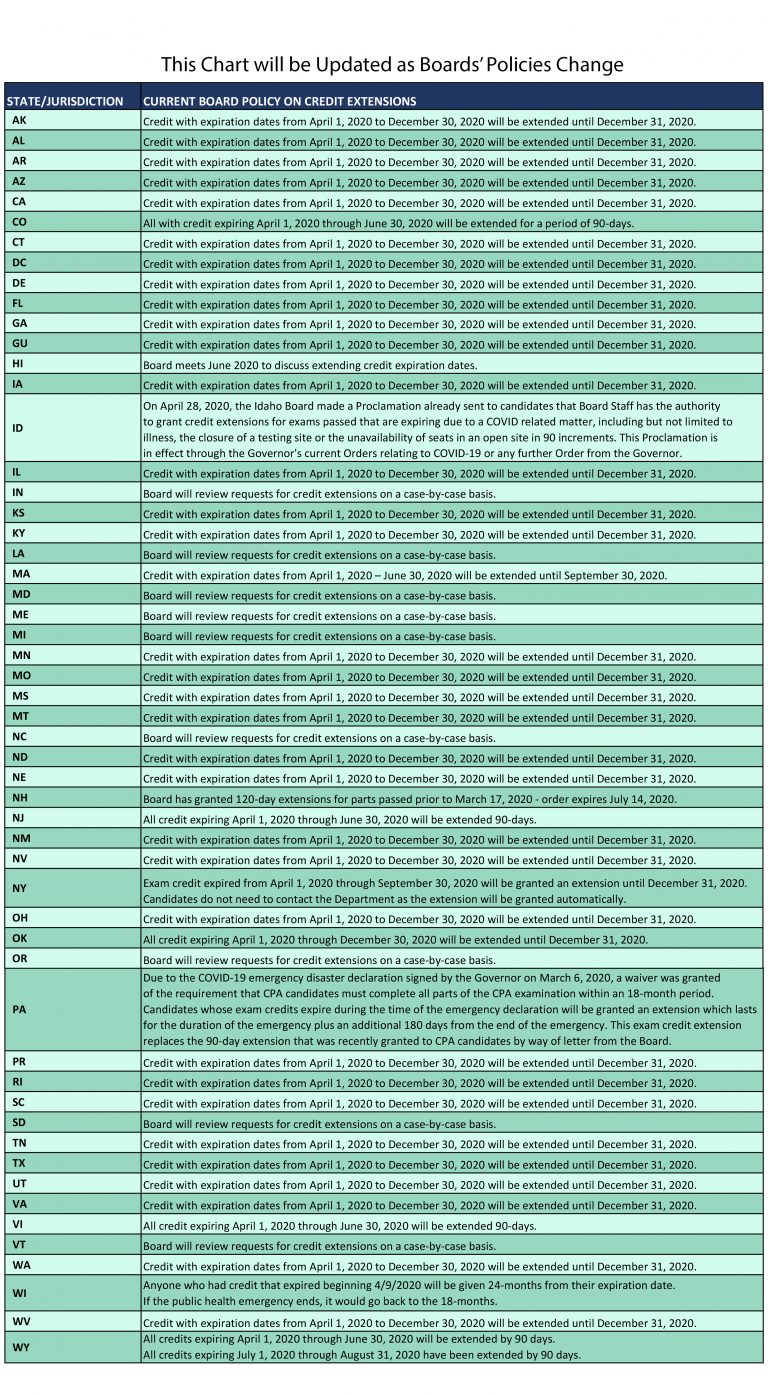 前几日,NASBA公布了各州2020年AICPA考试成绩及NTS有效期延期政策。各州延期政策有变!NASBA更新通知如下!