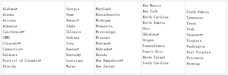 ** These states currently have more than one path to licensure, with at least one path meeting the 3E criteria of the UAA (baccalaureate degree or higher with 150 semester hours, minimum 1 year experience and Uniform CPA Examination)。 Based on their current laws/rules, these states have passed legislation terminating the alternative paths within the time limits set forth by the UAA. (The ** notation is informational and does not affect a state‘s current SE status. At such time as the alternate paths to licensure expire and the 3E criteria is the sole path to licensure in these states, the ** notation will be removed.)