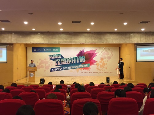 由南京审计大学会计学院、U.S.CPA中国协会、正保远程教育正保会计网校联合举办的“离别是欢聚的开始”主题盛会,2013级U.S.CPA方向班毕业暨颁奖典礼于2017年6月7日下午在南京审计大学敏达学术报告厅成功举办。2013级5名学生获得正保一等奖学金,2013、2014、2015级分别有5名学生获得正保二等奖学金。