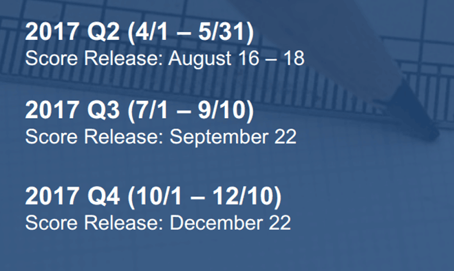 例如,如果是2017第二个考试窗口4月1日-5月31日参加考试,出成绩时间为8月16日-18日。