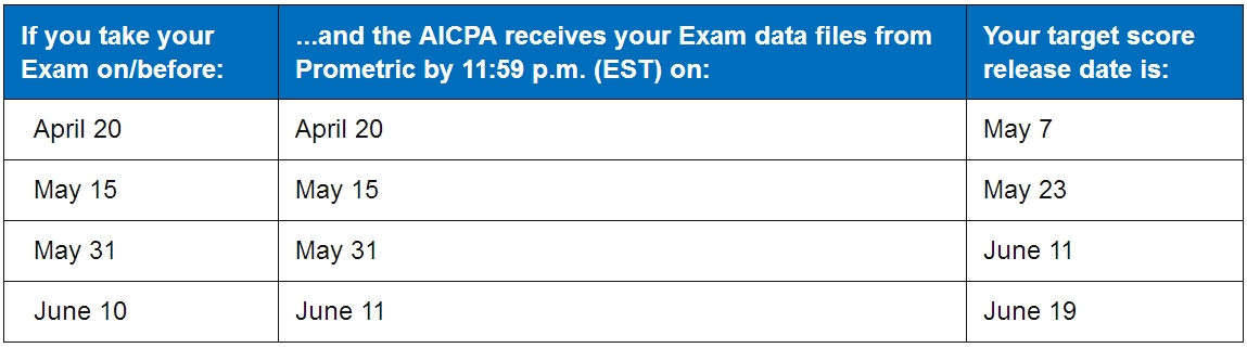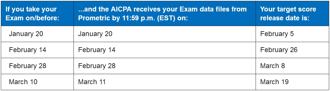 2019年第一考试季度AICPA考试时间及公布成绩时间