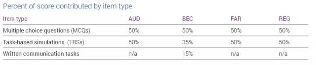 2019年AICPA考试包括四个科目:审计(AUD),商业环境(BEC),财务会计和报告(FAR)和法规(REG)。 这四个科目包含多项选择题(MCQ)和任务模拟题(TBS)。此外,BEC也有一部分写作的题目。