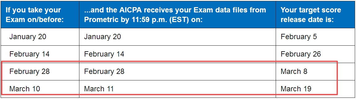 2. 一般情况AICPA考试成绩都会在指定日期发布,但是不能保证一定是在指定日期公布;