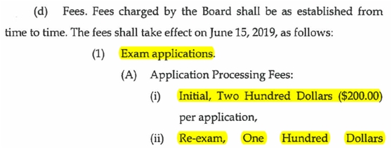 1. Initial Application fee由50美元调整为200美元;Re-exam Application Fee由50美元调整为100美元。