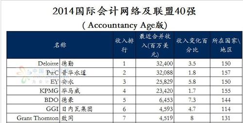 【导读】Age(简称 AA)在本月7号发布了2014年国际会计网络及联盟排行榜40强。