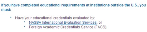 而且该州认可的评估机构,也有中国考生经常使用的评估机构——FACS。