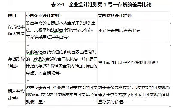 中国新修订的存货准则取消了存货发出计价方法中的后进先出法,理由是后进先出法不能真实反映存货流转,同时,新准则明确规定存货发生的借款费用应根据《企业会计准则第17号—借款费用》的规定予以资本化,计入存货成本。而美国《财务会计准则第151号—存货成本》则允许采用后进先出法。二者的具体比较如下: