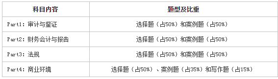 AICPA考试共包括Part1:审计与鉴证、Part2:财务会计与报告、Part3:法规、Part4:商业环境共四个科目,每个科考试时长均为4小时,还请各位AICPA考生知晓,更多问题可<点击在线咨询>