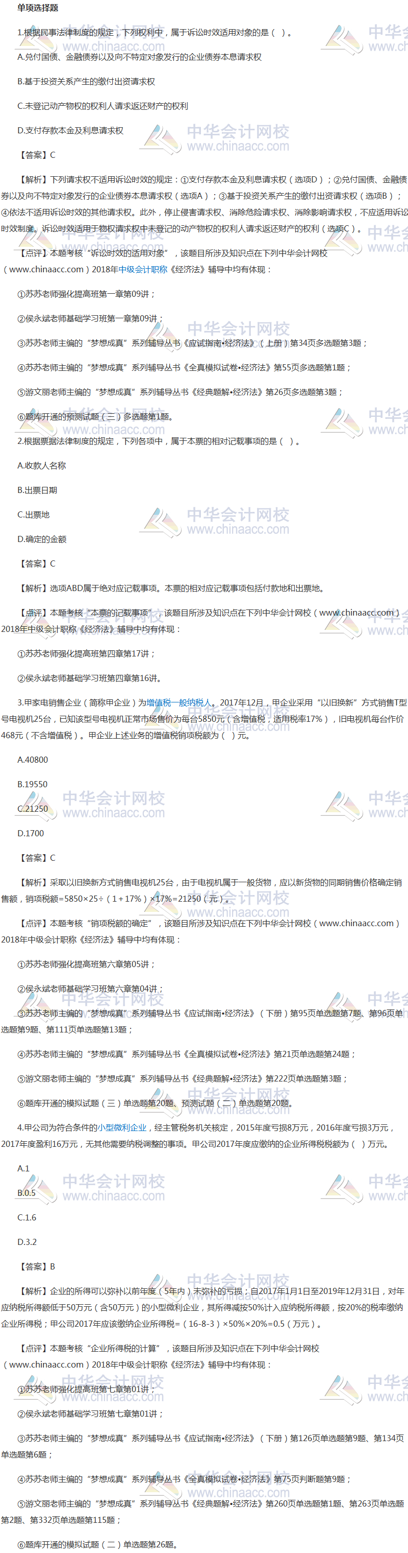 2018中级职称《经济法》试题及答案解析(考生回忆版) 第一批