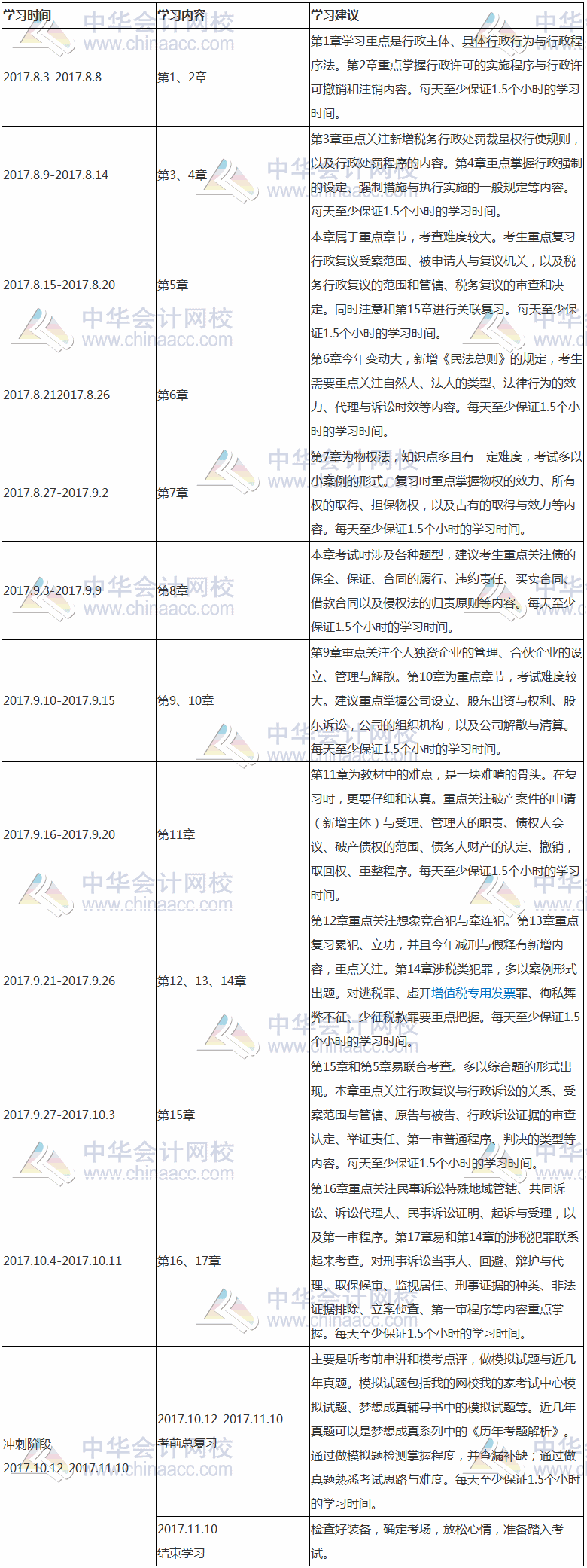 2017税务师《涉税服务相关法律》倒计时100天学习计划表