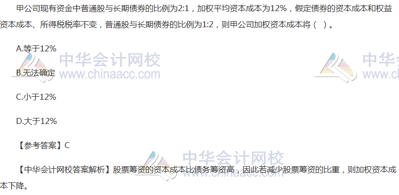 【点评】本题主要考查“加权资本成本”知识点。该题目所涉及知识点在下列正保会计网校(www.fawtography.com)2017年税务师《财务与会计》辅导中均有体