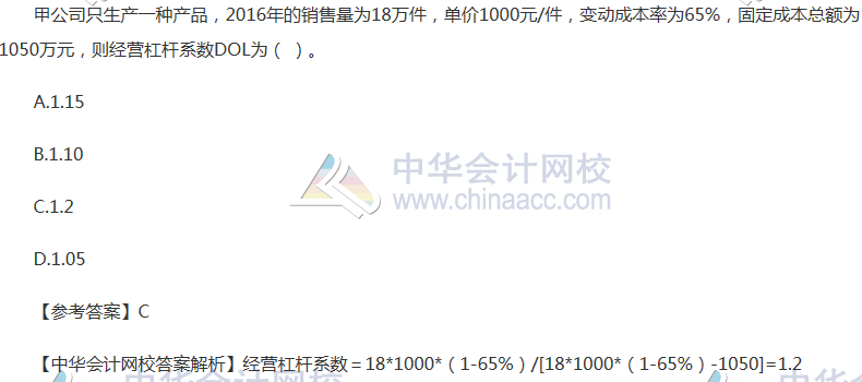 【点评】本题主要考查“经营杠杆”知识点。该题目所涉及知识点在下列正保会计网校(www.fawtography.com)2017年税务师《财务与会计》辅导中均有体现: