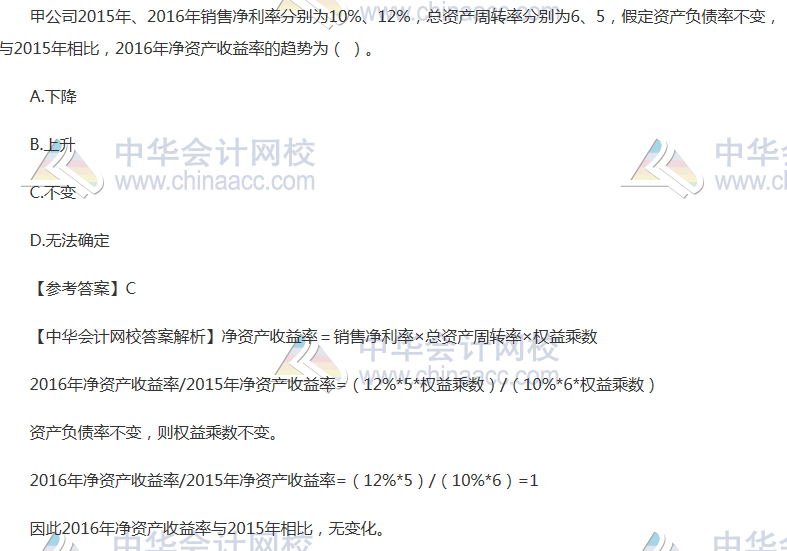 【点评】本题主要考查“杜邦分析”知识点。该题目所涉及知识点在下列正保会计网校(www.fawtography.com)2017年税务师《财务与会计》辅导中均有体现:
