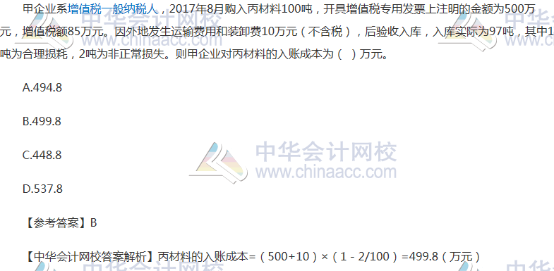 【点评】本题主要考查“存货的入账价值”知识点。该题目所涉及知识点在下列正保会计网校(www.fawtography.com)2017年税务师《财务与会计》辅导中均有体现: