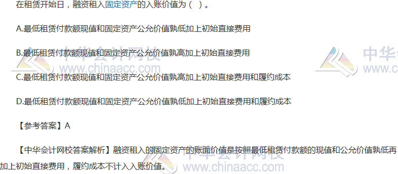 【点评】本题主要考查“融资租赁固定资产的入账价值”知识点。该题目所涉及知识点在下列正保会计网校(www.fawtography.com)2017年税务师《财务与会计》辅导中均有体现: