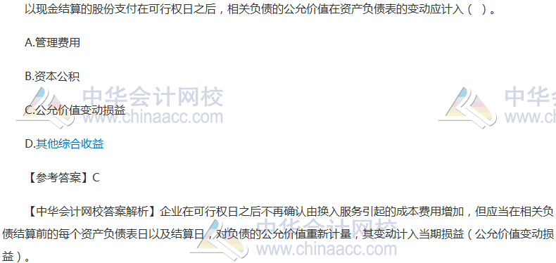 【点评】本题主要考查“以现金结算的股份支付”知识点。该题目所涉及知识点在下列正保会计网校(www.fawtography.com)2017年税务师《财务与会计》辅导中均有体现:①《财务与会计》高志谦老师基础班第13章03讲;②陈楠老师强化班第13章03讲;③“梦想成真”系列辅导丛书之《应试指南•财务与会计》第231页多选第5题;④“梦想成真”系列辅导丛书之《经典题解•财务与会计》第193页多选第7题;⑤考试中心开通的模拟试题(二)单选第28题。