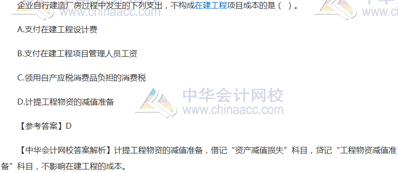 【点评】本题主要考查“自行建造固定资产的核算”知识点。该题目所涉及知识点在下列正保会计网校(www.fawtography.com)2017年税务师《财务与会计》辅导中均有体现:①《财务与会计》高志谦老师基础班第11章03讲;②陈楠老师强化班第11章02讲;③“梦想成真”系列辅导丛书之《应试指南·财务与会计》第169页单选第8题;④“梦想成真”系列辅导丛书之《经典题解·财务与会计》第132页例题1;⑤考试中心开通的模拟试题(一)单选第18题、模拟试题(二)多选第12题。